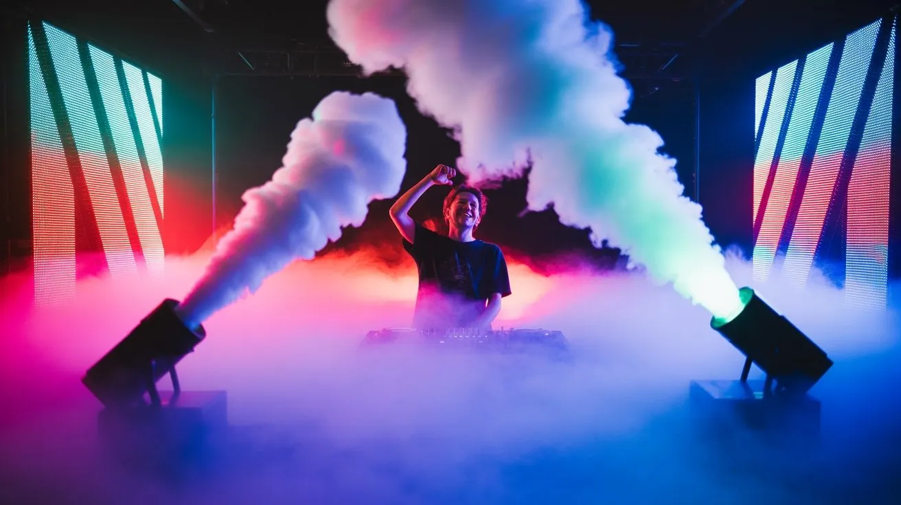 Most DJs don’t realize that fog density decreases by 40% within the first six feet of discharge, making your machine placement critical for maintaining consistent atmospheric effects throughout your set. You’ll need to account for thermal dynamics, air currents, and venue acoustics when positioning your equipment—factors that separate amateur installations from professional-grade atmospheric design. The difference between mediocre haze and show-stopping visual drama comes down to understanding fluid mechanics and strategic deployment techniques that most performers overlook.